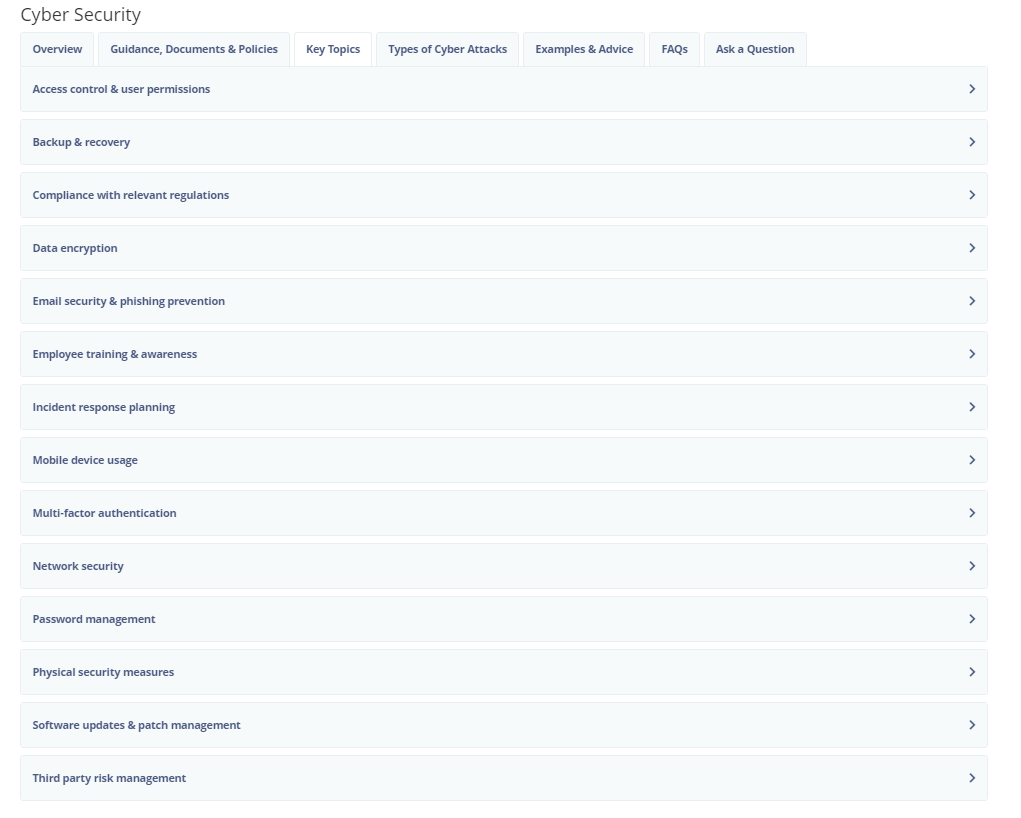 - Key Topics which cover the main areas to review for good cyber hygiene