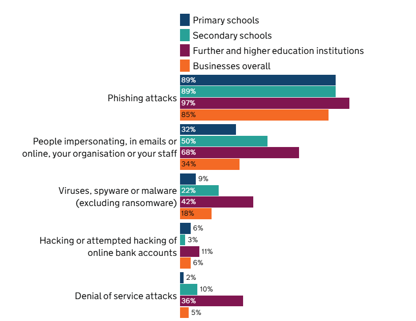 Schools, particularly colleges and universities, have seen an increase in impersonation attacks - where someone pretends to be staff or the school online.